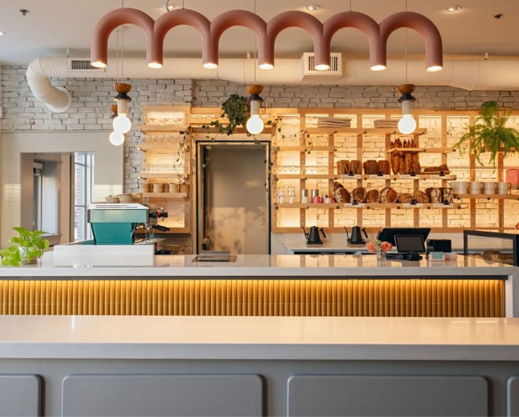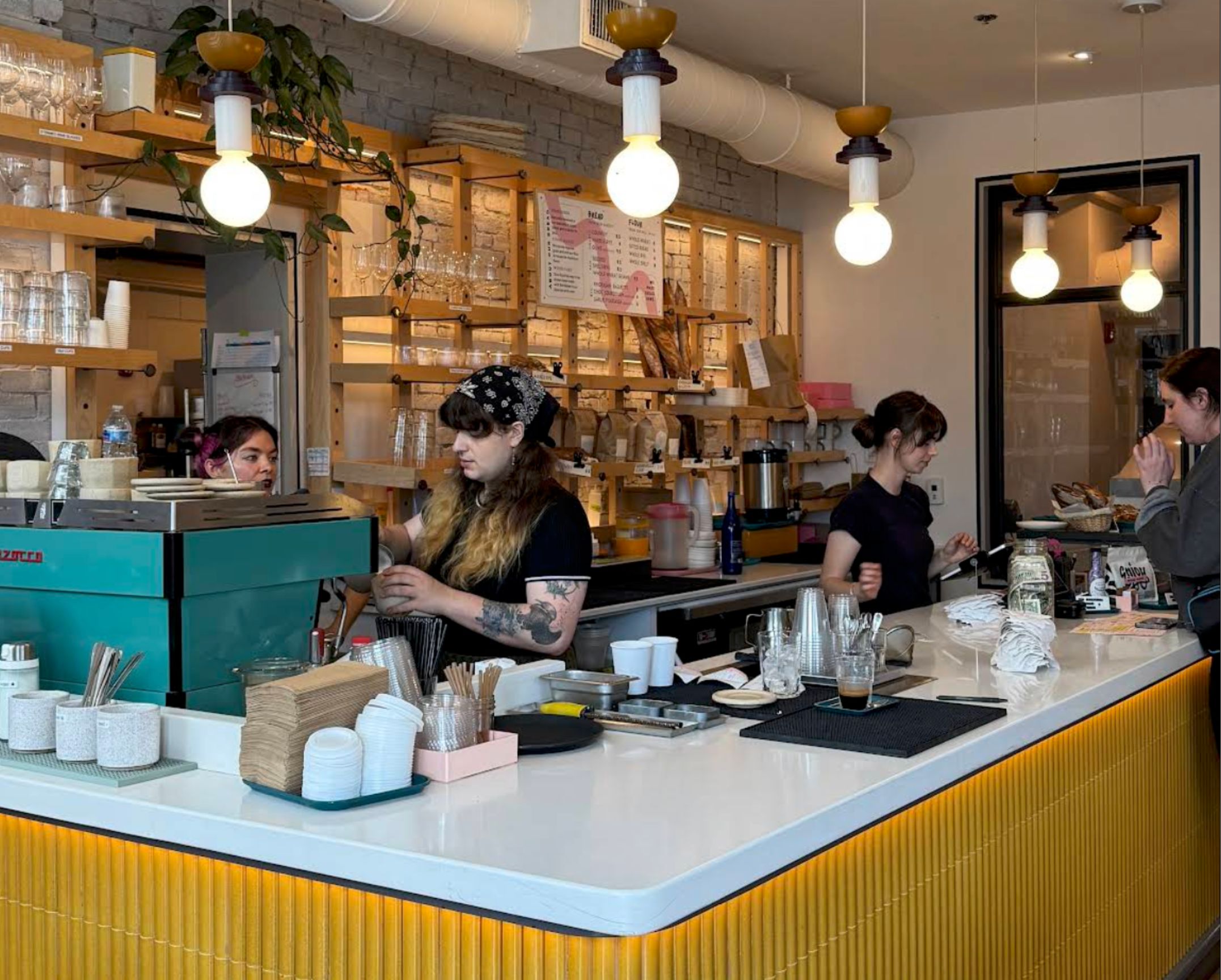 A stylish Old Port bakery and coffee shop with open views into the working kitchen and a relaxed brunch crowd.