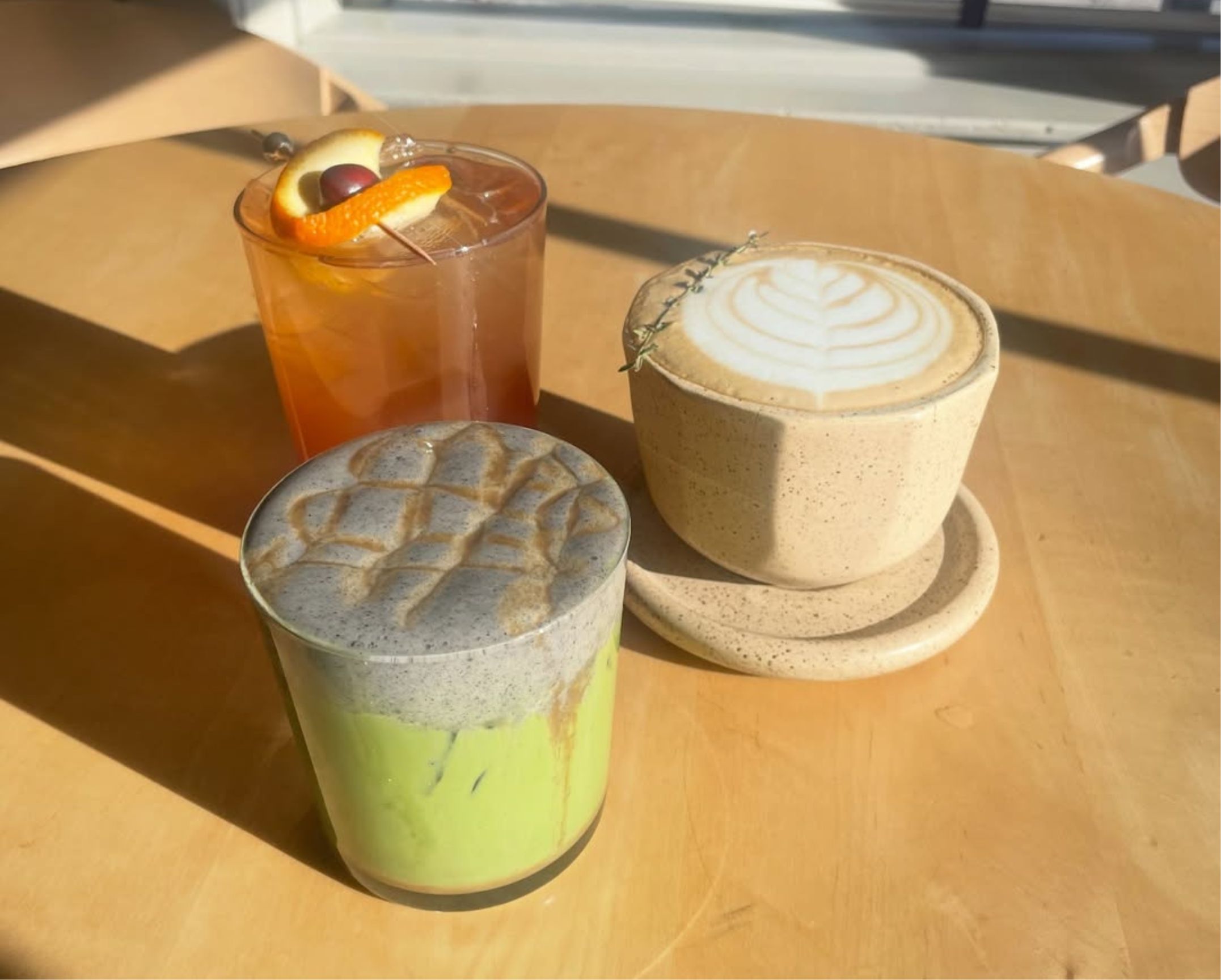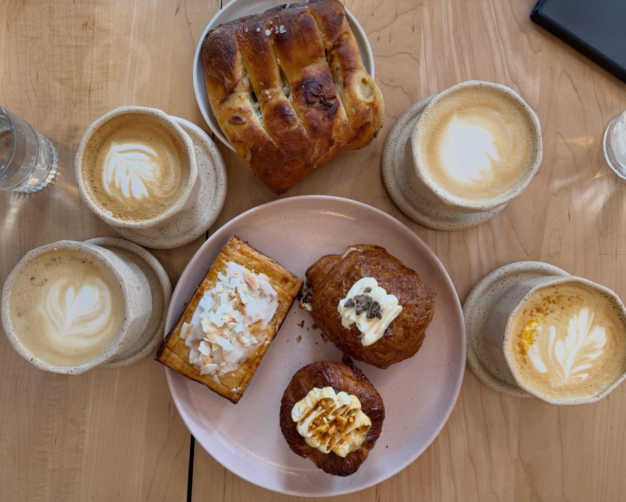 The Smoked Maple Latte or Brown Butter Latte, paired with flaky croissants or slices of their naturally leavened sourdough.