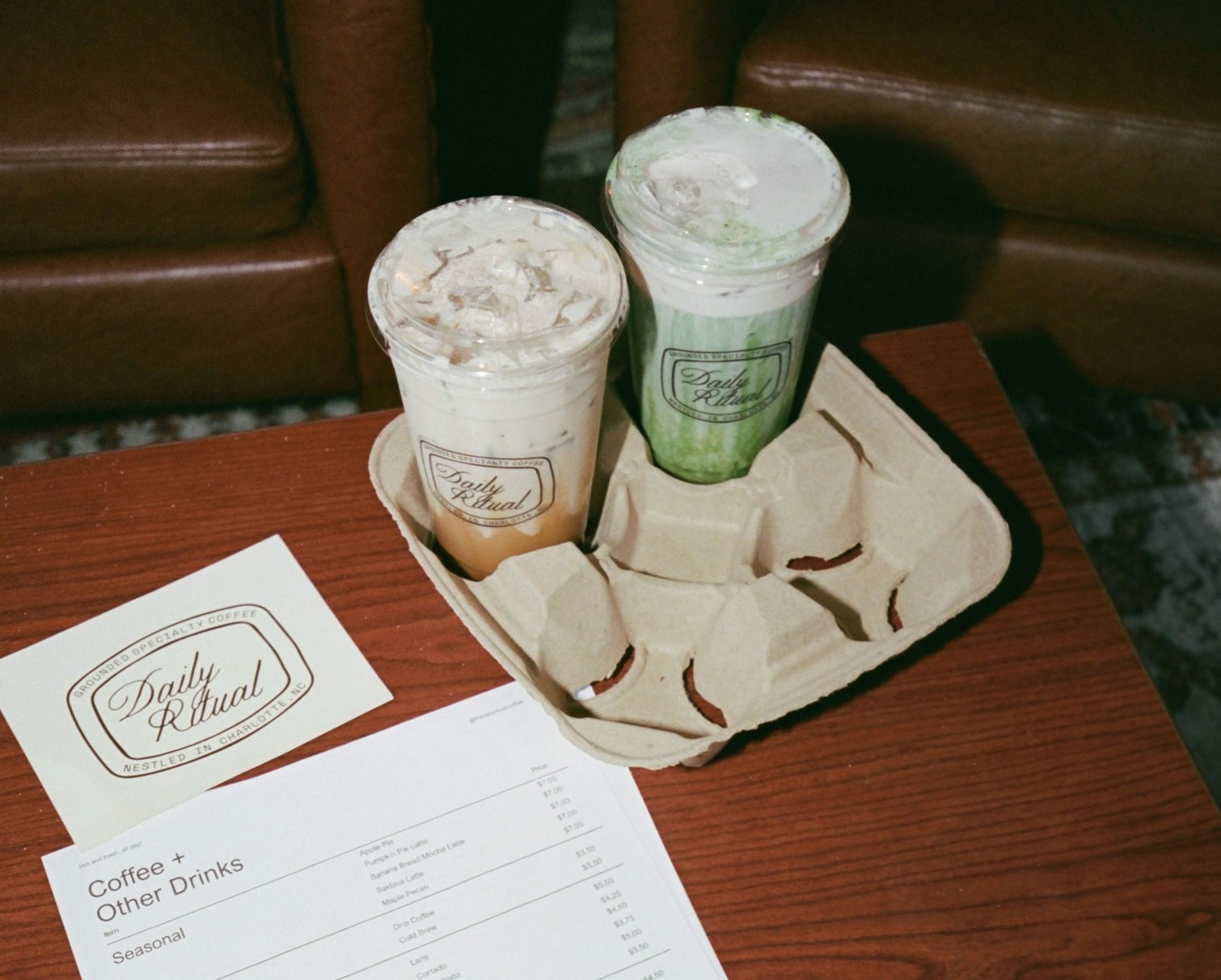 Daily Ritual focuses on bold, flavor-forward drinks made with house syrups and optional add-ins like collagen or mushroom powder.