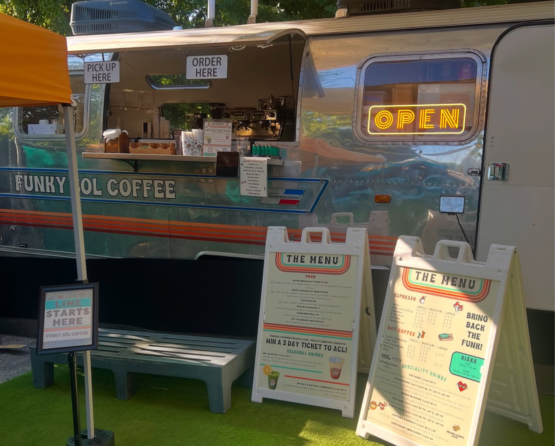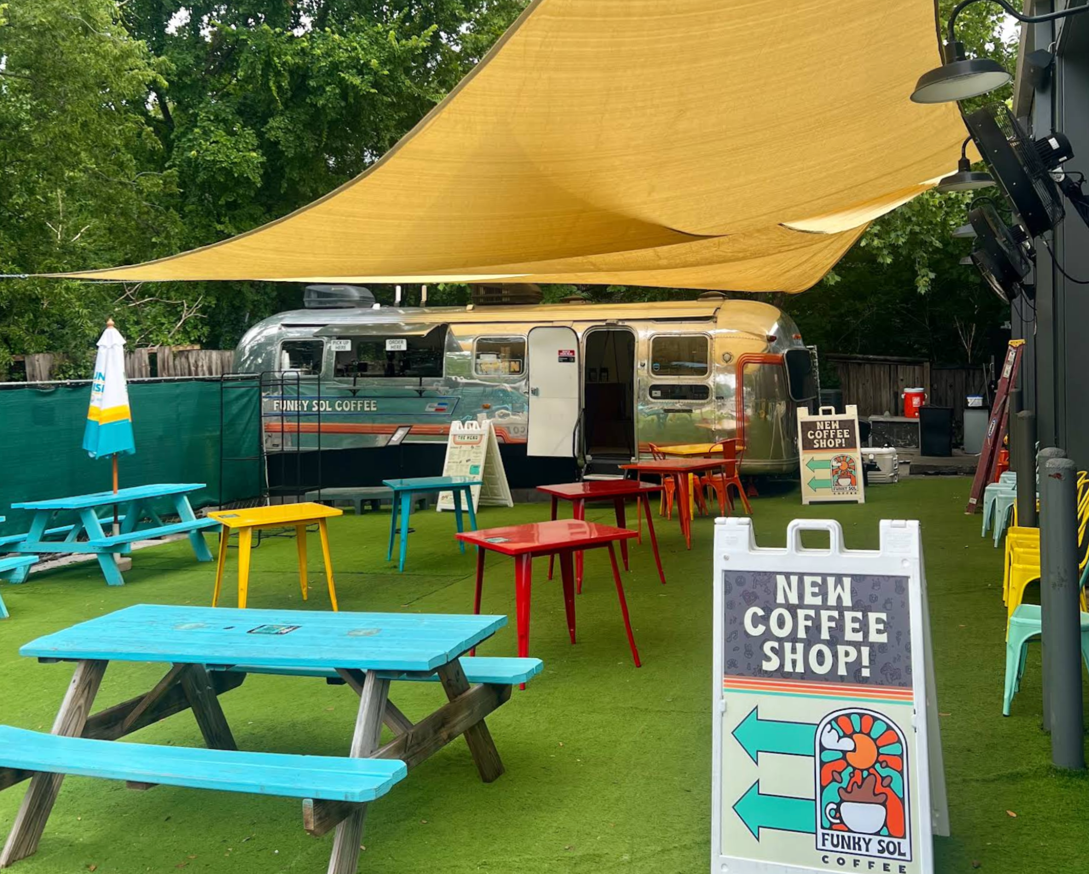 Funky Sol Coffee is a vibrant, community centered coffee shop known for bold flavors, creative specialty drinks, and a fun, 70’s inspired vibe. The cafe operates out of a renovated 1975 Airstream trailer parked at Bouldin Acres on South Lamar Boulevard, giving it a unique, playful atmosphere that feels more like a local hangout than a traditional coffee counter.