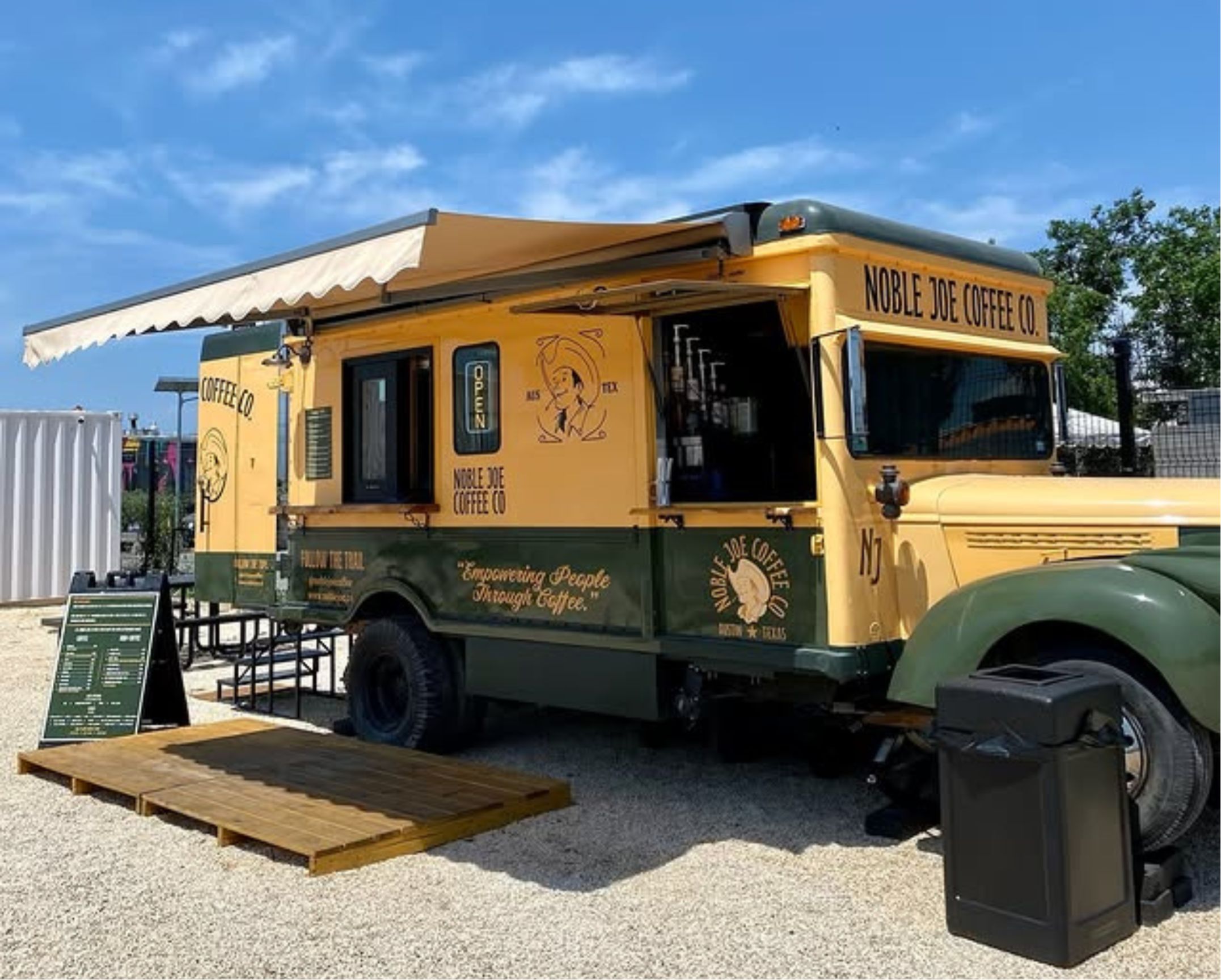 Noble Joe Coffee Co. is a community-focused coffee shop in Austin serving thoughtful coffee and specialty drinks in a relaxed, outdoor setting. The shop has two locations: one on Riverside Drive and another in South Austin off Saint Elmo Road. Set inside an outdoor food truck park near the trails, the Riverside cafe invites people to linger, chat, or grab a drink on the go. With creative drinks and a friendly vibe, Noble Joe fits easily into your daily routine.