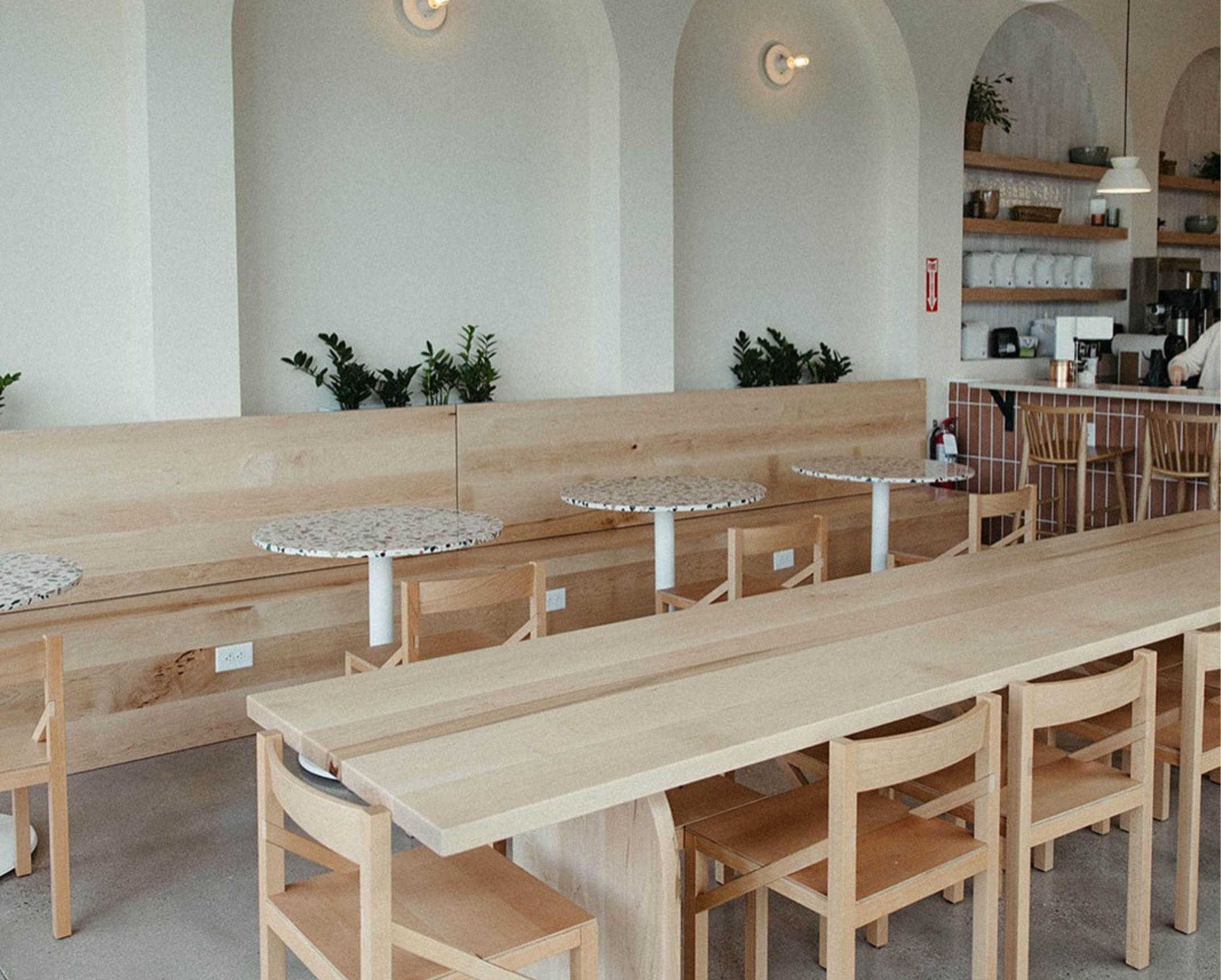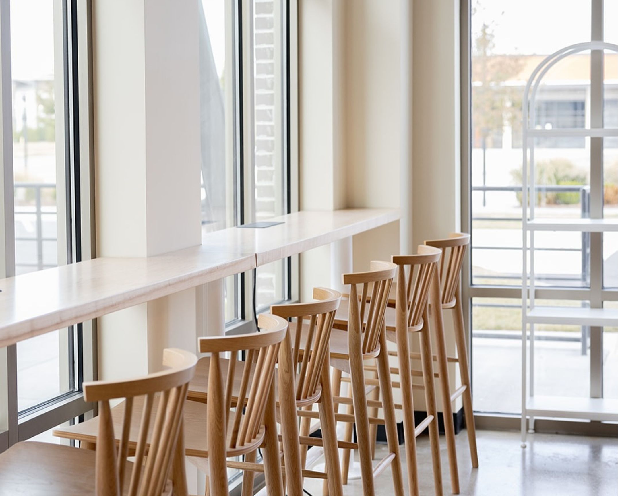 A bright, airy coffee shop with modern design and plenty of seating, perfect for working, meeting up with friends, or enjoying a relaxed morning in Wendell Falls.
